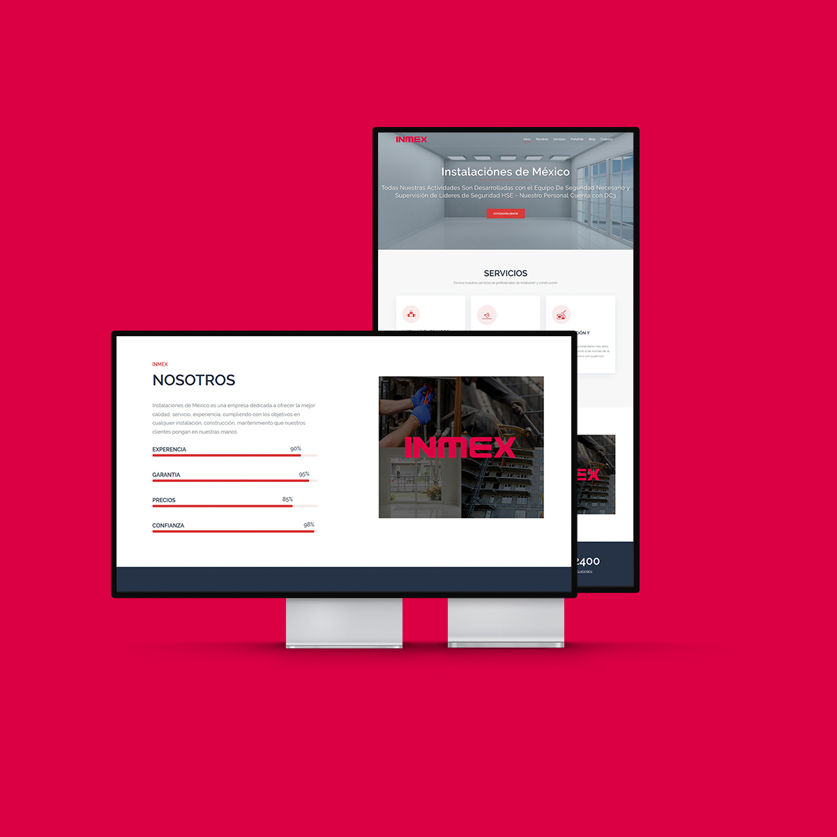 El proyecto fue desarrollado cumpliendo los objetivos del cliente mediante el briefing del cliente, creando un diseño corporativo y serio, en donde la presentamos a que se dedica la empresa en la portada del sitio mostrando el contenido otorgado por la empresa, en la siguiente sección de nosotros mostramos una breve historia de la empresa, siguiendo la parte de los servicios donde se diseñaron imágenes en svg para cada servicio que ofrece INMEX, se agrego in blog de noticias para que se compartan las últimas noticias de la empresa, y por ultimo se añadió un formulario de contacto para lograr que los clientes soliciten una cotización a la empresa.